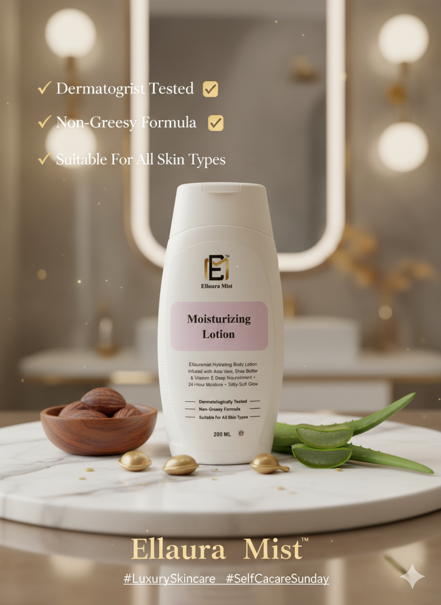 Deep hydration, silky glow — the lotion every skin type loves. 💧✨ #Ellauramist”